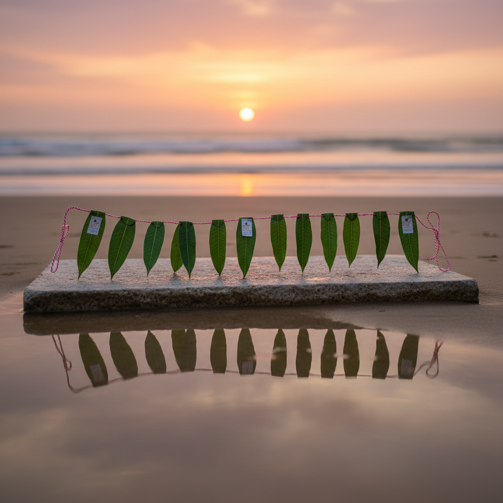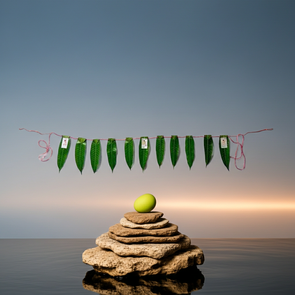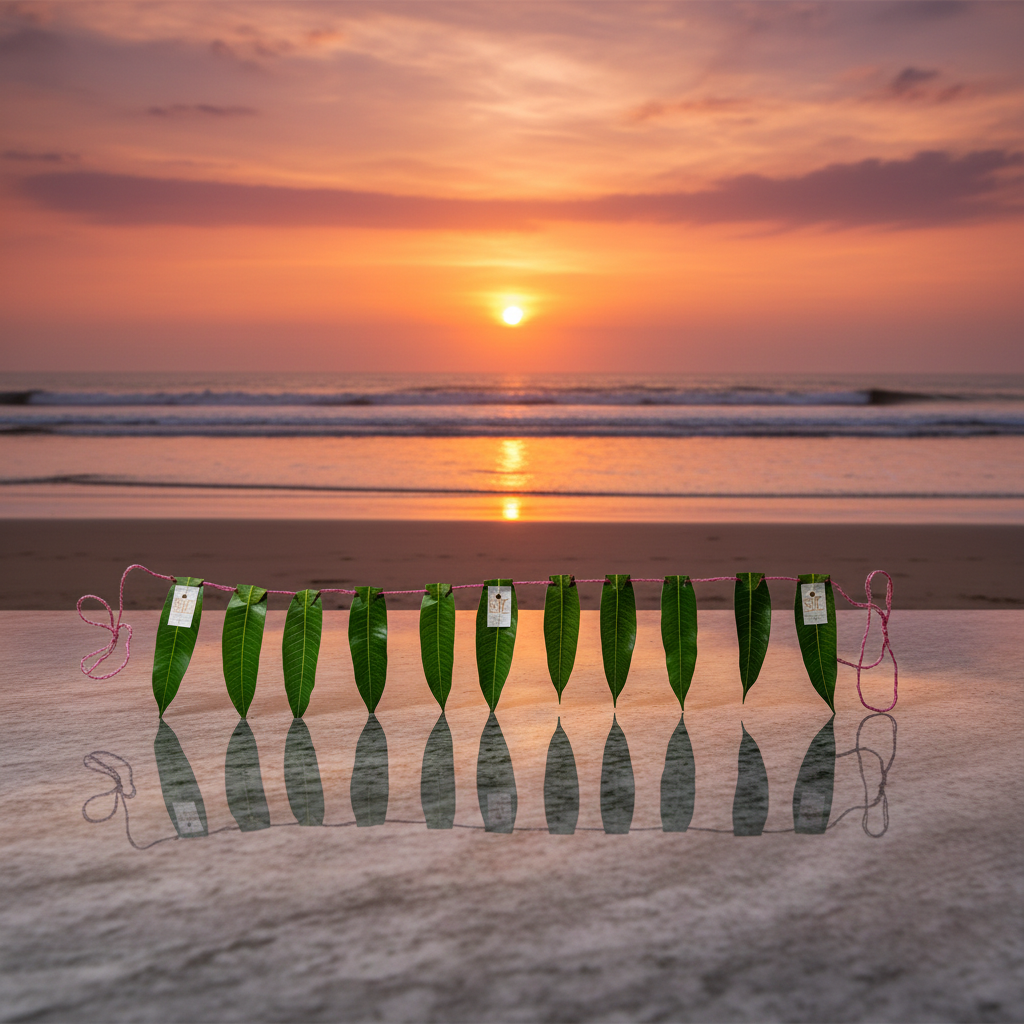 A mango leaf toran is a traditional Indian door decoration made with mango leaves, believed to bring good luck, positivity, and prosperity to the home.